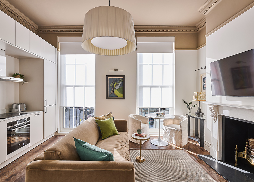 This Grade II Listed former derelict HMO has been reconfigured to include three elegant apartments and a striking penthouse with a private roof terrace, all created specifically for the luxury rental market.